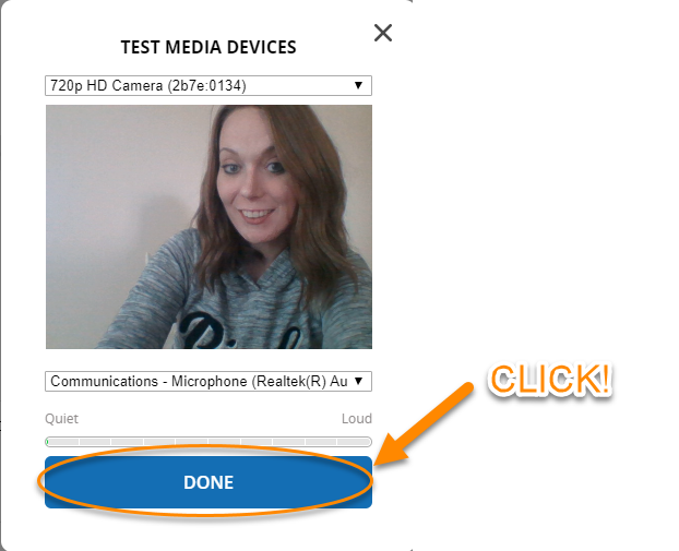 A pop up will appear allowing the Patient to test their microphone and camera. When the Patient is finished with their test, the Patient will simply click the Done button to return to the Lobby.